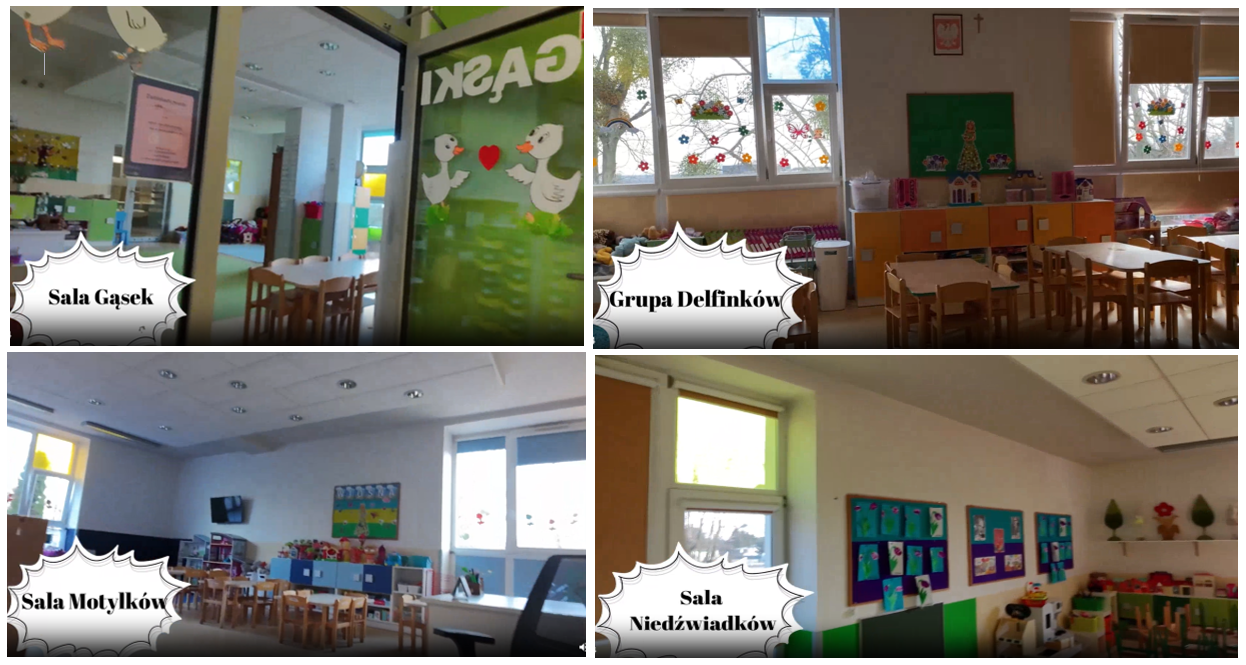 W nagraniu zaprezentowane zostały pomieszczenia przedszkolne oraz przestrzenie, z których na co dzień korzystają najmłodsi.