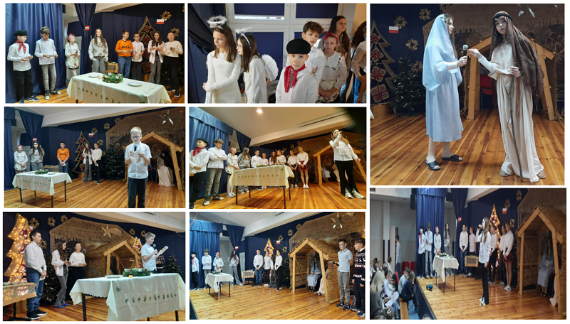 W dniu 18 grudnia, w naszej szkole odbyło się uroczyste przedstawienie jasełkowe przygotowane przez uczniów klasy 3a wraz z wychowawcą p. Agnieszką Ożgą. Wydarzenie zgromadziło społeczność szkolną i wprowadziło wszystkich w wyjątkowy, świąteczny nastrój.