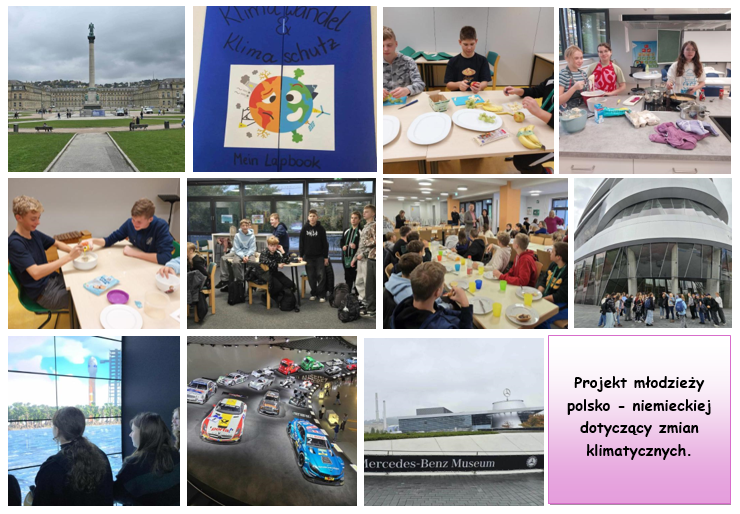 W dniach 06 -10 października, uczniowie z klasy 7b: Hania, Kasia, Michał, Olek wraz z wychowawcą p. Agnieszką Sakowicz byli na wymianie uczniowskiej w Niemczech. To był wspaniale spędzony czas naszej młodzieży powitanej serdecznie przez młodzież z zaprzyjaźnionej szkoły. Ciekawym doświadczeniem było przebywanie w gościnnych domach niemieckich przyjaciół. Projekt poświęcony był zmianom klimatycznym na świecie. Uczniowie rozmawiali po niemiecku, co mogą zrobić dla środowiska. Na ten temat odbyły się ciekawe rozmowy. Goście byli na wycieczce w Centrum Klimatycznym na tematycznych warsztatach. Gotowali wspólnie posiłki z produktów ekologicznych. Wykonywali wspólnie okolicznościowe plakaty poświęcone ochronie środowiska. Popołudniami spędzali czas na zajęciach sportowych grając w piłkę. Wśród atrakcji na uwagę zasługuje wycieczka do Muzeum Mercedesa w Stuttgarcie. Kiedy przyszedł czas pożegnań uczniowie i nauczyciele wspólnie zjedli pyszne śniadanie. Gości z Polski pożegnał burmistrz miasta Suizfeld. Ten czas spędzony w Niemczech był ciekawym doświadczeniem i pokazał, że młodzież ma wiele wspólnych zainteresowań. Zaprosiliśmy uczniów z niemieckiej szkoły do Polski. Będzie to z pewnością mile spędzony czas.