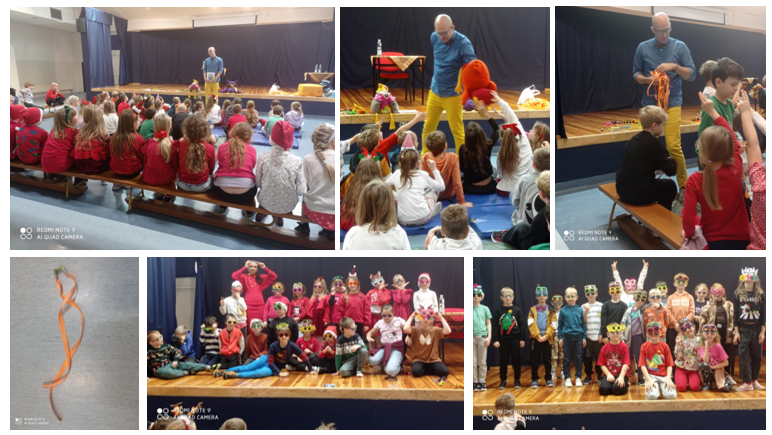 W przerwach pomiędzy krótkimi opowieściami dotyczącymi treści książek, uczniowie klas: 2a, 2b oraz 1b mieli możliwość m.in. „nakarmienia” pluszowej kury; zabawy z balonami oraz wypróbowania „komet” stworzonych z kolorowej wstążki i tektury. Na zakończenie spotkania chętne osoby mogły zakupić książkę Pana Poety – razem z pamiątkowym autografem.