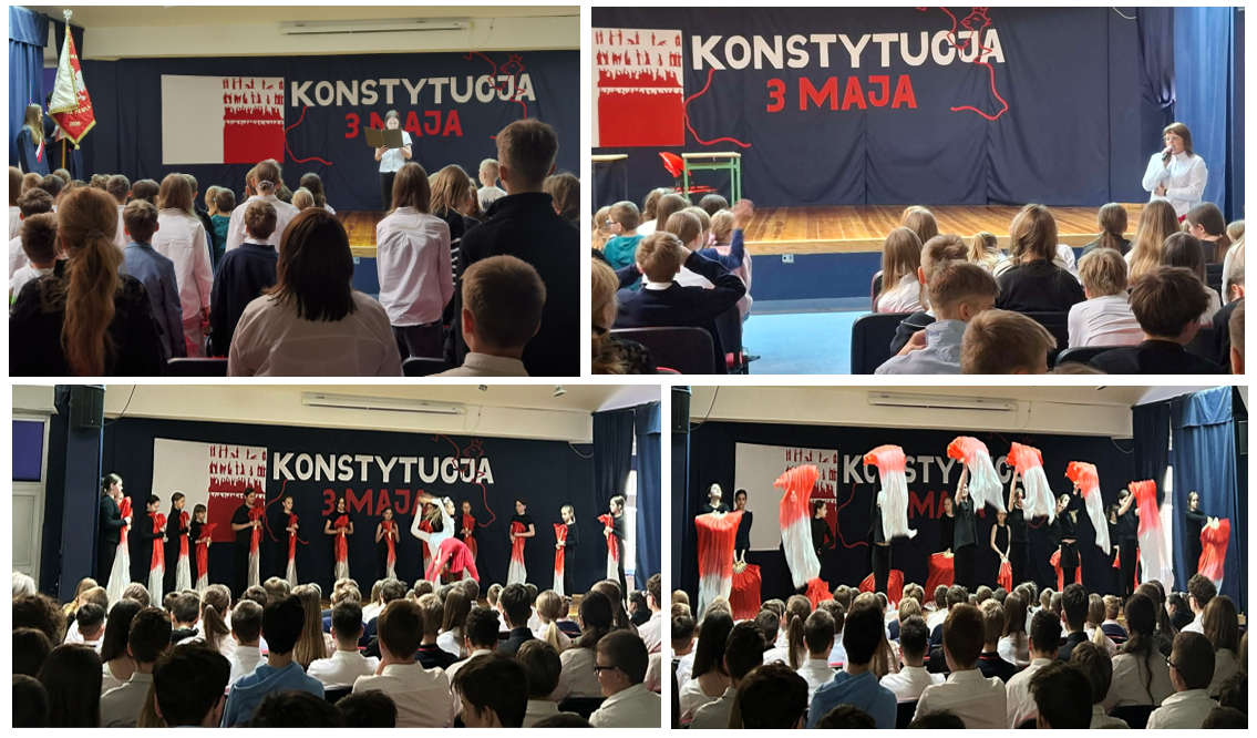 W naszej szkole odbyła się uroczysta akademia upamiętniająca rocznicę uchwalenia Konstytucji 3 Maja – jednego z najważniejszych wydarzeń w historii Polski. Obchody rozpoczęły się wprowadzeniem sztandaru szkoły oraz wspólnym, podniosłym odśpiewaniem hymnu narodowego.