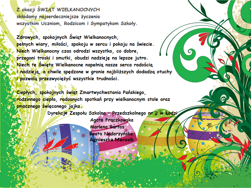 Życzenia wielkanocne dla uczniów, rodziców i wszystkich przyjaciół naszej szkoły.